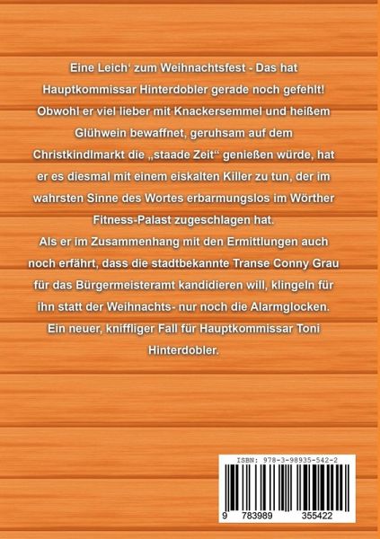Lebkuchen, Leberkäs und Langhanteln. Eine Kombination, die es in sich hat in Hauptkommissar Hinterdoblers sechstem Fall! "Hanteltod", der neue Bayernkrimi von Martina Schmid Eine Leich¿ zum Weihnachtsfest - Das hat Hauptkommissar Hinterdobler gerade noch gefehlt! Obwohl er viel lieber mit Knackersemmel und heißem Glühwein bewaffnet, geruhsam auf dem Christkindlmarkt die ¿staade Zeit¿ genießen würde, hat er es diesmal mit einem eiskalten Killer zu tun, der im wahrsten Sinne des Wortes erbarmungslos im Wörther Fitness-Palast zugeschlagen hat. Als er im Zusammenhang mit den Ermittlungen auch noch erfährt, dass die stadtbekannte Transe Conny Grau für das Bürgermeisteramt kandidieren will, klingeln für ihn statt der Weihnachts- nur noch die Alarmglocken. Ein neuer, kniffliger Fall für Hauptkommissar Toni Hinterdobler. Der 6. Fall der Bayernkrimi-Reihe von Martina Schmid. Ein Provinzkrimi mit bayerischem Charme und Humor. Tauchen Sie jetzt ein in einen spannenden Bayernkrimi mit Humor und viel Lokalkolorit, indem Sie auf "Jetzt Kaufen" klicken. Jetzt die Bayernkrimis von Martina Schmid lesen und mit Kommissar Hinterdobler in das Lokalkolorit einer ostbayerischen Kleinstadt und den Eigenheiten ihrer Einwohner eintauchen.