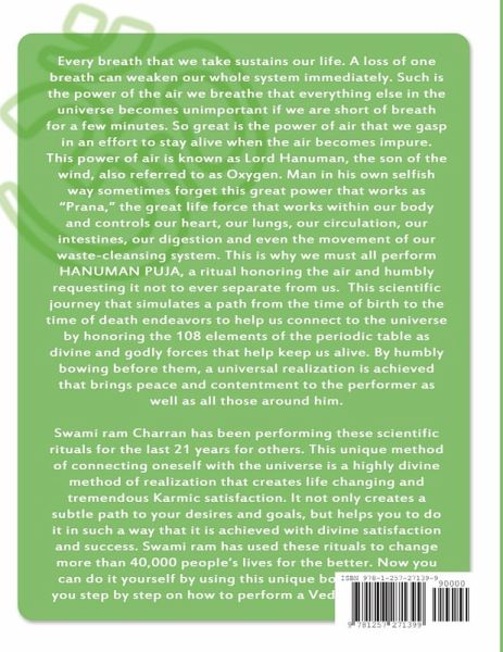 A Scientific Process of Rebirth and Renewal that Gives You Control over Your Destiny This is a detailed ceremony to Lord Hanuman, the Lord of the Air that sustains the human body in good health, and the strength required to overcome all enemies and evils in life. The Hanuman Puja was developed to help a person achieve the confidence necessary for him or her to travel along the path of life. By providing possible answers to confusing questions in his mind a mind will go forth on his objectives with great strength and encouraging emotions of victory.