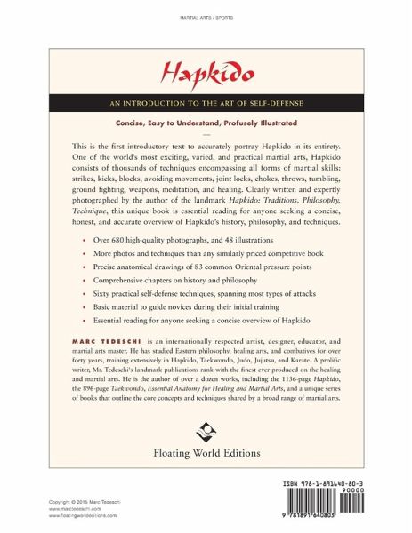 The essential introductory text, written by the author of the landmark 1136-page book, "Hapkido: Traditions, Philosophy, Technique." ----- This is the first introductory text to accurately portray Hapkido in its entirety. One of the world's most exciting, varied, and practical martial arts, Hapkido consists of thousands of techniques encompassing all forms of martial skills: strikes, kicks, blocks, avoiding movements, joint locks, chokes, throws, tumbling, ground fighting, weapons, meditation, and healing. Clearly written and expertly photographed by the author of the landmark Hapkido: Traditions, Philosophy, Technique, this unique book is essential reading for anyone seeking a concise, honest, and accurate overview of Hapkido's history, philosophy, and techniques. It includes: Over 680 high-quality photographs, and 48 illustrations More photos and techniques than any similarly priced competitive book Precise anatomical drawings of 83 common Oriental pressure points Comprehensive chapters on history and philosophy Sixty practical self-defense techniques, spanning most types of attacks Basic material to guide novices during their initial training Essential reading for anyone seeking a concise overview of Hapkido Note: The information in this 128-page book comes from material extracted from the author's 1136-page work, Hapkido: Traditions, Philosophy, Technique. Readers seeking a comprehensive presentation of Hapkido should obtain the larger work. For more information, visit marctedeschi.com