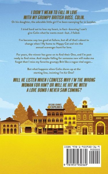 I didn't mean to fall in love with my grumpy British boss, Colin. Or his daughter, the adorable little girl I've been nannying for in London. I tried hard not to lose my heart, in fact-knowing I can't give Colin what he wants most-but...I failed. I've become way too good at failure, but all of that's about to change when I fly home to Happy Cat and win the annual scavenger hunt for love. For years, the winner has gone on to find their One, and I'm past ready to find mine. And maybe falling for someone new will make me forget that I miss my favorite grumpy Brit like a rogue vital organ... But what happens when Colin shows up at the starting line, insisting I'm his One? Will he listen when I confess why I'm the wrong woman for him? Or will he hit me with a love bomb I never saw coming?