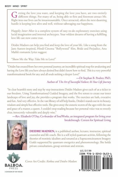 Getting the love you want, and keeping the love you have, are two entirely different things. For many of us, being able to first and foremost attract Mr. Right into our lives can be insurmountable. Once attracted, often the next daunting hurdle is keeping love alive and well, without sabotaging our happiness. Happily Inner After is a complete system of easy-to-do exploratory exercises using lucid imagination and internal archetypes. Your wildest dreams of having a fulfilling love life can now come true. Deidre Madsen can help you find and keep the love of your life. Like a song from the Jane Austen-inspired, Hindi Cinema "Bollywood" film, Bride and Prejudice, Anu Malik's romantic lyrics suggest: "Show Me the Way; Take Me to Love!"