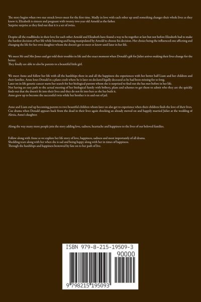 The story begins when two star struck lovers meet for the first time. Madly in love with each other up until something changes their whole lives as they know it, Elizabeth is sixteen and pregnant with twenty two year old Arnold as the father. Surprise surprise as they find out that it is a set of twins. Despite all the roadblocks in their love for each other Arnold and Elizabeth have found a way to be together at last but not before Elizabeth had to make the hardest decision of her life while listening and being manipulated by Arnold to choose his decision. Her choice being the influenced one affecting and changing the life for her own daughter whom she doesn't get to meet or know until later in her life. We meet Mr and Mrs Jones and get told their troubles in life and the exact moment when Donald's gift for Juliet arrives making their lives change for the better. They finally are able to also be parents to a beautiful little girl. We meet Anne and follow her life with all the hardships there in and all the happiness she experiences with her better half Liam and her children and their families. Anne loses Donald in a plane crash where he is later on declared legally deceased as he had been missing for so long. Later on in life genetic cancer starts her search for her biological parents whom she is surprised to find out she has met before in her life. Not having an easy path to the actual meeting of her biological family with bribery, plans and schemes to get them to admit who they are she quickly finds out that she doesn't fit into their lives and they do not fit into hers as she has built it. Anne grew up to become the successful twin while her brother is in and out of jail. Anne and Liam end up becoming parents to two beautiful children whom later on also get to experience when their children finds the love of their lives. Cue drama when Donald appears back from the dead in their lives again shocking an already moved on and happily married Juliet at the wedding of Alexia, Anne's daughter. Along the way many more people join the story adding love, sadness, heartache and happiness to the lives of our beloved families. Follow along with Anne as we explore her life story of love, happiness, sadness and most importantly of all drama. Shedding tears along with her when she is sad and being happy along with her in times of happiness. Through the hardships and happiness bestowed by fate on to her path of live.