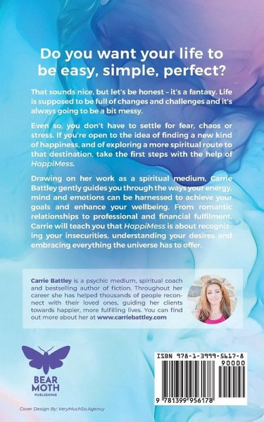 Do you want your life to be easy, simple, perfect? That sounds nice, but let's be honest - it's a fantasy. Life is supposed to be full of changes and challenges and it's always going to be a bit messy. Even so, you don't have to settle for fear, chaos or stress. If you're open to the idea of finding a new kind of happiness, and of exploring a more spiritual route to that destination, take the first steps with the help of HappiMess. Along the way, you will discover: · Four core principles to bring greater joy to all aspects of your life · Simple techniques and exercises to reshape habits and raise your vibration · Visualizations and affirmations to cultivate satisfaction and a healthier mindset · Spiritual guidance for seeking abundance, gratitude and growth · An awareness of, and connection to, your higher self Drawing on her work as a spiritual medium, Carrie Battley gently guides you through the ways your energy, mind and emotions can be harnessed to achieve your goals and enhance your wellbeing. From romantic relationships to professional and financial fulfilment, Carrie will teach you that HappiMess is about recognizing your insecurities, understanding your desires and embracing everything the universe has to offer. Carrie Battley is a psychic medium, spiritual coach and bestselling author of fiction. Throughout her career she has helped thousands of people reconnect with their loved ones, guiding her clients towards happier, more fulfilling lives. You can find out more about her at www.carriebattley.com.
