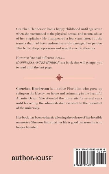 Gretchen Henderson had a happy childhood until age seven when she succumbed to the physical, sexual, and mental abuse of her stepfather. He disappeared a few years later, but the trauma that had been endured severely damaged her psyche. This led to deep depression and several suicide attempts However, fate had different ideas... HAPPINESS AFTER HORROR is a book that will compel you to read until the last page.