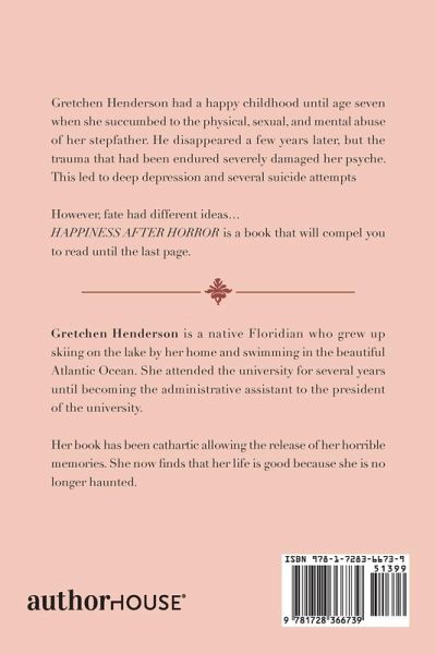 Gretchen Henderson had a happy childhood until age seven when she succumbed to the physical, sexual, and mental abuse of her stepfather. He disappeared a few years later, but the trauma that had been endured severely damaged her psyche. This led to deep depression and several suicide attempts However, fate had different ideas... HAPPINESS AFTER HORROR is a book that will compel you to read until the last page.