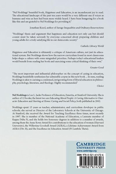 'Nel Noddings' beautiful book, Happiness and Education, is an incandescent joy to read. The educational landscape of the past ten years would be a very different one if voices as humane and wise as hers had been more widely heard. I have been hungering for a book like this and am grateful to Nel Noddings for providing it.' Jonathan Kozol, author of Savage Inequalitites and Ordinary Resurrections