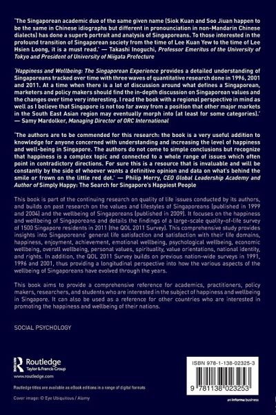 1. Introduction, Context and Research Methodology 2. Subjective Wellbeing (I): Satisfaction with Life, Life Domains and Living in Singapore 3. Subjective Wellbeing (II): Happiness, Enjoyment, Achievement and Other Aspects 4. Personal Values and Spirituality 5. Value Orientations and Clustering of Singaporeans 6. National Identity, Rights and Politics 7. Determinants of Wellbeing and Role of the Government 8. Conclusion and Implications