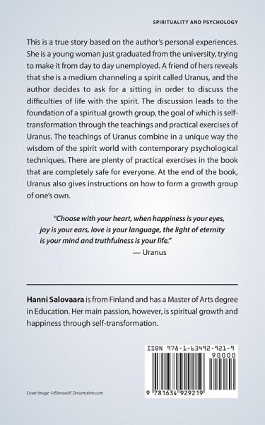 Winner of the 2019 Body, Mind and Spirit Book Awards - Spiritualism Category This is a true story based on the author's personal experiences. She is a young woman just graduated from the university, trying to make it from day to day unemployed. A friend of hers reveals that she is a medium channeling a spirit called Uranus, and the author decides to ask for a sitting in order to discuss the difficulties of life with the spirit. The discussion leads to the foundation of a spiritual growth group, the goal of which is self-transformation through the teachings and practical exercises of Uranus. The teachings of Uranus combine in a unique way the wisdom of the spirit world with contemporary psychological techniques. There are plenty of practical exercises in the book that are completely safe for everyone. At the end of the book, Uranus also gives instructions on how to form a growth group of one's own.