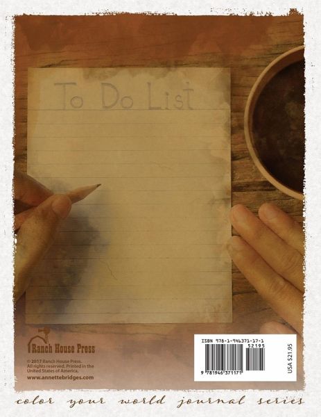 Happiness Is Making Lists is one of eighteen niche journals making up the Color Your World journal series. Each journal in the series has been given a specific theme so you can organize your ideas, inspirations, and things you want to remember. If you're like most people, you have a journal (or even two or three journals) where you write anything and everything about anything and everything. The challenge comes when you're trying to find something that you've written. You flip and flip through the pages of your two, three, or four journals trying to find whatever it is. A niche journal offers you a solution! The Color Your World journal series is journaling without limits. You will love the beautiful watercolor designs. And you need big unlined paper to record big ideas, dreams, and memories. You need room to grow, stretch, and expand with space to think beyond the confines of what you've always done. You're encouraged to journal using colored pens and markers. Your world doesn't happen in black and white. Your life should be lived and written about in many colors. Learn more about the author and all of her books at annettebridges.com Journal details: 180 page journal 8.5 x 11 Full-color unlined interior with graphics Paperback full-color glossy duplex cover with inside printing on both front and back covers Check out the perfect purse and pocket size Jot Journals of the Color Your World Journal Series also available