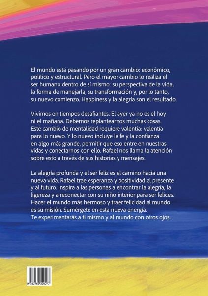 El mundo está pasando por un gran cambio: económico, político y estructural. Pero el mayor cambio lo realiza el ser humano dentro de sí mismo: su perspectiva de la vida, la forma de manejarla, su transformación y, por lo tanto, su nuevo comienzo. Happiness y la alegría son el resultado. Vivimos en tiempos desafiantes. El ayer ya no es el hoy ni el mañana. Debemos replantearnos muchas cosas. Este cambio de mentalidad requiere valentía: valentía para lo nuevo. Y lo nuevo incluye la fe y la confianza en algo más grande, permitir que eso entre en nuestras vidas y conectarnos con ello. Rafael nos llama la atención sobre esto a través de sus historias y mensajes. La alegría profunda y el ser feliz es el camino hacia una nueva vida. Rafael trae esperanza y positividad al presente y al futuro. Inspira a las personas a encontrar la alegría, la ligereza y a reconectar con su niño interior para ser felices. Hacer el mundo más hermoso y traer felicidad al mundo es su misión. Sumérgete en esta nueva energía. Te experimentarás a ti mismo y al mundo con otros ojos.