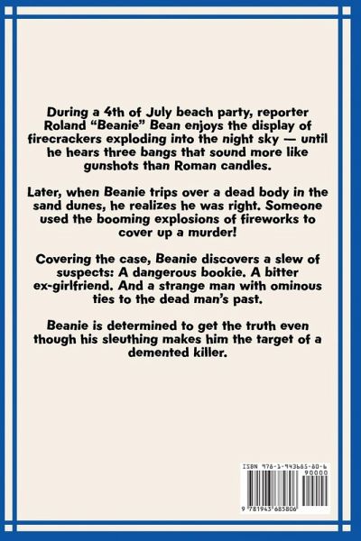 Barbecue, festive cocktails, fireworks and ... a dead body? During a 4th of July beach party, reporter Roland "Beanie" Bean enjoys the display of firecrackers exploding into the night sky - until he hears three bangs that sound more like gunshots than Roman candles. Later, when Beanie trips over a dead body in the sand dunes, he realizes he was right. Someone used the booming explosions of fireworks to cover up a murder! Covering the case, Beanie discovers a slew of suspects: A dangerous bookie. A bitter ex-girlfriend. And a strange man with ominous ties to the dead man's past. Beanie is determined to get the truth even though his sleuthing makes him the target of a demented killer. Happy 4th of July Murder is a holiday cozy murder mystery novel. With lots of clues and red herrings, it features plenty of twists and turns to keep you guessing until the end!