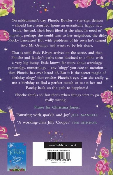 One midsummer's day, Phoebe Bowler - a star-sign demon - should have returned home an ecstatically happy new bride. Instead, she's been jilted at the altar. In need of sympathy, perhaps she could turn to her neighbour, the dishy Rocky Lancaster? But, with problems of his own, he's turned into Mr. Grumpy and wants to be left alone. That is until Essie Rivers arrives on the scene, and Phoebe and Rocky's paths seem destined to collide with a very big bump. Essie knows far more about astrology, person-ology, numerology - any '-ology' you care to mention - than Phoebe has ever heard of. But it is the secret magic of 'birthday-ology' that catches Phoebe's eye. Can she really use a birthday to find her perfect match, or set her and Rocky back on the path to happiness? Phoebe thinks so, but that's when things start to go really wrong . . . Praise for Christina Jones: 'Magical' Heat 'Fabulous The Times 'A wonderful writer' Jill Mansell, author of AND NOW YOU'RE BACK 'H.E. Bates for the 21st Century' Katie Fforde 'Christina is simply THE BEST . . . I don't think she is capable of writing anything which isn't excellent' Reader review