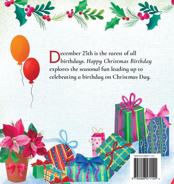 December 25th is the rarest of all birthdays making those who celebrate it that much more unique. A Christmas Birthday is double the fun in one day and extra special! Happy Christmas Birthday explores the seasonal fun leading up to celebrating a birthday on Christmas Day.