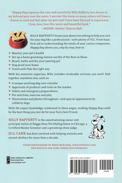 Show off your happy dog! Every Friday from September 6 - October 2, 2009 the authors will choose a photograph of a happy dog to post on their website and treat the winner to a fabulous prize package. See www.happydogland.com/contest for details.A well cared-for dog is a happy dog. This book goes beyond grooming to explain how the personal touch can make a big difference in a pet's physical and emotional health. From basic first aid to understanding the complete needs of a canine companion, Happy Dog shows pet owners step-bystep how to: • Monitor a pet's health • Set up a stellar home grooming station • Brush, bathe, and dry a panting pal • Dog-proof the home and travel right With his extensive expertise, Billy Rafferty includes invaluable and exclusive features, such as: • A yearly grooming calendar • Appraisals of products and tools on the market • Safety and emergency preparedness tips • Pet nutrition, exercise and play rules • Illustrations and photos throughout-including special appearances by celebrity dogs With the expert knowledge condensed in these pages, reading Happy Dog could be the best thing a dog owner ever does for a furry best friend.