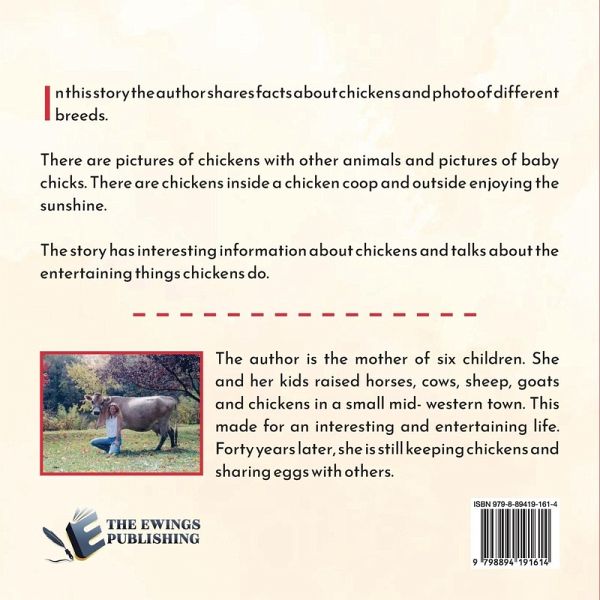 In this story the author shares facts about chickens and photo of different breeds. There are pictures of chickens with other animals and pictures of baby chicks. There are chickens inside a chicken coop and outside enjoying the sunshine. The story has interesting information about chickens and talks about the entertaining things chickens do.