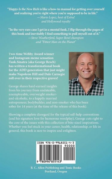 Two-time Webby Award winner and Instagram meme sensation Tank.Sinatra (aka George Resch) has written a transformational book for the ADD generation that just might make Napoleon Hill and Dale Carnegie roll over in their respective graves! George shares hard-earned insights from his journey from undateable, unemployable, overweight smoker-and-alcoholic, to a happily married entrepreneur, bodybuilder, and non-smoker who has been sober for 14 years (at the time of the release of this book). Showing a complete disregard for the typical self-help conventions (and his signature love for humorous wordplay), George cuts right to the core of the issues with this collection of bit-sized inspiration. Whether you feel stuck in your career, health, relationships, or life in general, this book is sure to inspire and enlighten.