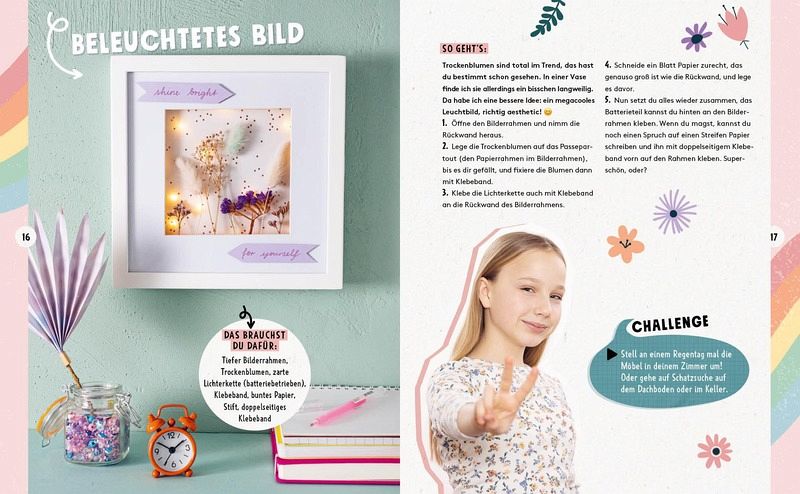 Dieses Buch zaubert dir sofort ein Grinsen ins Gesicht! Im Mitmach-Buch von Hey Isi findest du jede Menge spannende Tipps und coole DIY-Ideen zu Themen wie Schule, Self Care, Freundschaft und Co., die du ganz easy umsetzen kannst! Willst du dein Zimmer umgestalten, coole Outfitideen finden oder deinen eigenen Bubble-Tea machen? Dann bist du bei #Happy genau richtig. Alleine oder mit deiner BFF - in Isis Buch findest du viele coole Tipps, um deinen Alltag bunt und lustig zu gestalten. Lust auf eine Portion Fun und Kreativität? Dann los - it's #Happy-Time!
