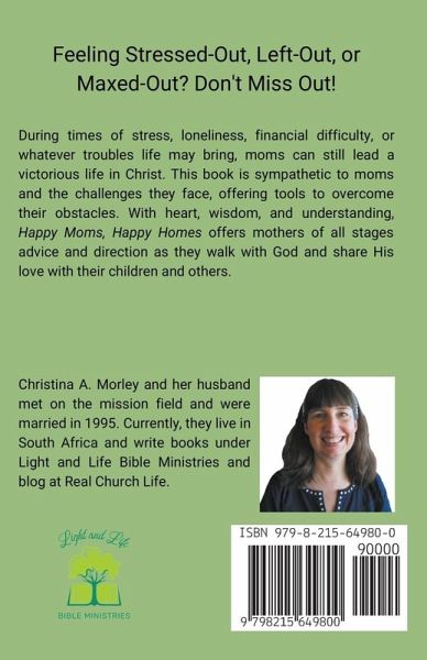 Feeling Stressed-Out, Left-Out, or Maxed-Out? Don't Miss Out! During times of stress, loneliness, financial difficulty, or whatever troubles life may bring, moms can still lead a victorious life in Christ. This book is sympathetic to moms and the challenges they face, offering tools to overcome their obstacles. With heart, wisdom, and understanding, Happy Moms, Happy Homes offers mothers of all stages advice and direction as they walk with God and share His love with their children and others.