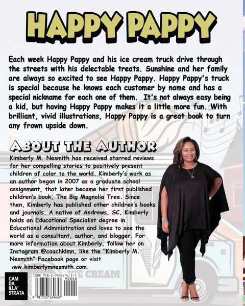 Each week Happy Pappy and his ice cream truck drive through the streets with his delectable treats. Sunshine and her family are always so excited to see Happy Pappy. Happy Pappy's truck is special because he knows each customer by name and has a special nickname for each one of them. It's not always easy being a kid, but having Happy Pappy makes it a little more fun. With brilliant, vivid illustrations, Happy Pappy is a great book to turn any frown upside down.
