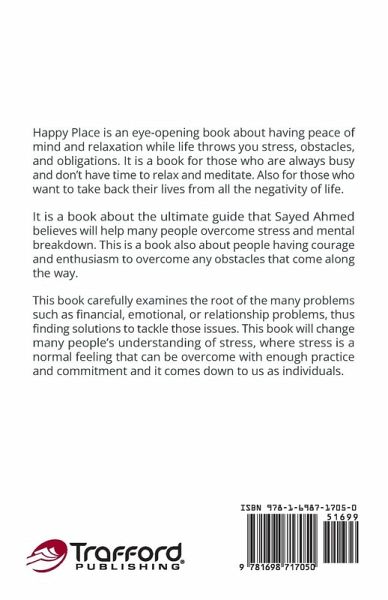 Happy Place is an eye-opening book about having peace of mind and relaxation while life throws you stress, obstacles, and obligations. It is a book for those who are always busy and don't have time to relax and meditate. Also for those who want to take back their lives from all the negativity of life. It is a book about the ultimate guide that Sayed Ahmed believes will help many people overcome stress and mental breakdown. This is a book also about people having courage and enthusiasm to overcome any obstacles that come along the way. This book carefully examines the root of the many problems such as financial, emotional, or relationship problems, thus finding solutions to tackle those issues. This book will change many people's understanding of stress, where stress is a normal feeling that can be overcome with enough practice and commitment and it comes down to us as individuals.