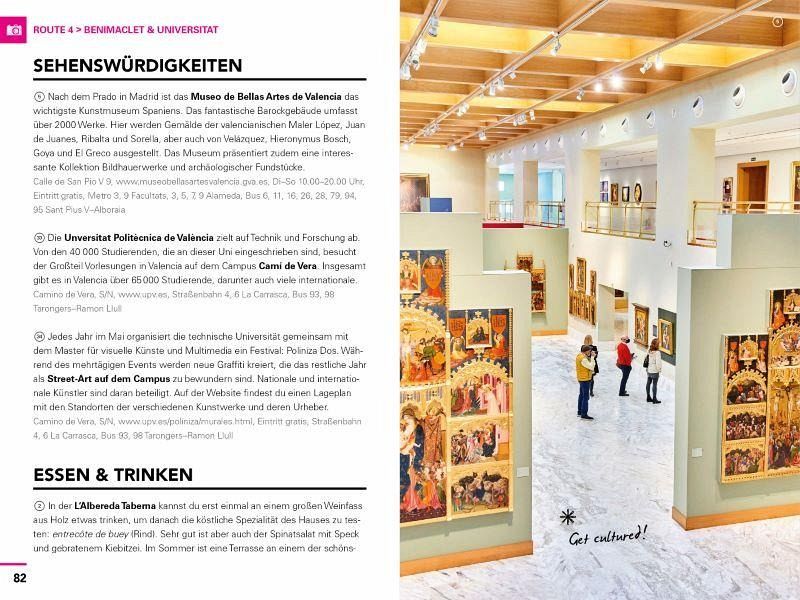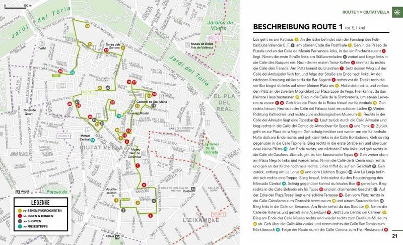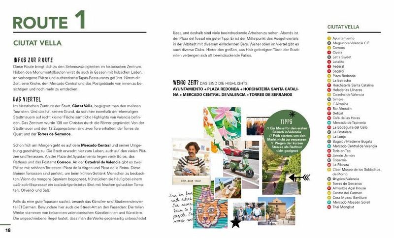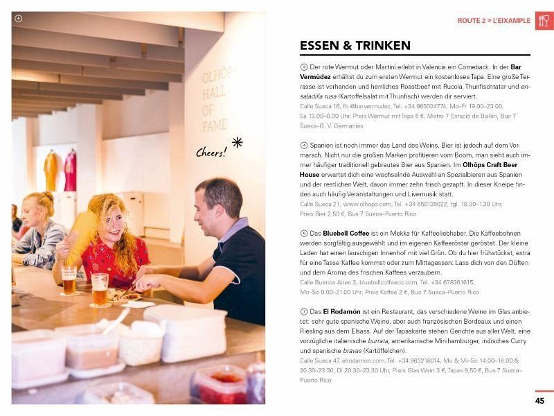 Der happy time guide nimmt dich mit auf sechs unterschiedliche Spaziergänge, bei denen du die Stadt in deinem eigenen Tempo entdeckst und den Lebensstil der Locals kennenlernst. Die Routen führen dich zu den beliebtesten Restaurants, Cafés, Museen, Shops und Sehenswürdigkeiten, durch verwinkelte Straßen und zu erholsamen Oasen.Valencia bietet Besuchern authentische Tapas-Bars, historische Gebäude und echten spanischen Lifestyle, aber auch kreative Street-Art und ein pulsierendes Nachtleben.Und das alles erlebst du, ohne dich vorbereiten zu müssen! Alle Adressen sind persönliche Empfehlungen der Autoren, die in der Stadt leben. Mit inspirierenden Bildern und praktischen Ausklappkarten.Tauche ein in das atemberaubende Flair Valencias!