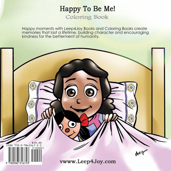 Book: Happy To Be Me! Coloring Book A companion coloring book for "Happy To Be Me!" by Patrice Lee. It's more than a coloring book. It contains interactive exercises to help children focus on life's happiest moments. Lessons on happiness, self-esteem, and more are reinforced in many ways. Filled with language arts activities as well. Recommended for age 6 and up.