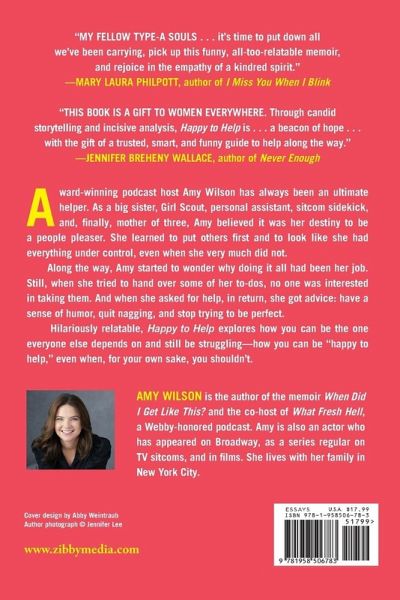 A Brit&Co Most Anticipated Books of 2025 An IPPY Gold Medalist in Essays A National Indies Excellence Awards Memoir Finalist Amy Wilson, co-host of the award-winning podcast What Fresh Hell, takes a funny and insightful look at how women are conditioned to be "happy to help"-and what happens when things don't go that way. Award-winning podcast host Amy Wilson has always been an ultimate helper. As a big sister, Girl Scout, personal assistant, sitcom sidekick, and, finally, mother of three, Amy believed it was her destiny to be a people pleaser. She learned to put others first and to look like she had everything under control, even when she very much did not. Along the way, Amy started to wonder why doing it all had been her job. Still, when she tried to hand over some of her to-dos, no one was interested in taking them. And when she asked for help, in return, she got advice: have a sense of humor, quit nagging, and stop trying to be perfect. Hilariously relatable, Happy to Help explores how you can be the one everyone else depends on and still be struggling-how you can be "happy to help," even when, for your own sake, you shouldn't.