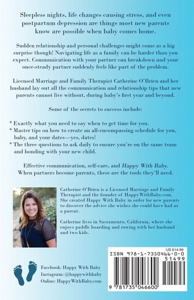 Less sleep, stressful life changes, and even postpartum depression are things most new parents know are possible when baby comes home. Sudden relationship and personal challenges might come as a big surprise though! Navigating life as a family can be harder than expected. Between unwanted parenting advice and no time for self-care, good communication with your partner can halt to a standstill. Your once-steady partner suddenly feels like part of the problem. Licensed Marriage and Family Therapist Catherine O'Brien and her husband lay out the communication skills and relationship strategies that new moms and dads need during baby's first year and beyond. Navigate through difficult circumstances like overcoming a hard pregnancy with step-by-step help. With this uplifting guide of advice, you'll transform into a couple who works together to be the best caregivers for your baby. Discover secrets to success, including:Exactly what to say when you just want some time to yourself, because self-care is a must for a caregiver. How to bring the passion and sex (fireworks included!) back into your relationship after baby comes. Master tips to create an all-encompassing schedule for you, newborn care, and dating-yes, dates! How to stop keeping score and work on your new normal together. Three questions to ask yourself and your partner daily to ensure you're on the same team and bonding with your child. Even couples who have the "best marriage ever" can't come home from the hospital and expect to become perfect parents. You need training. You need discipline. And you need a guide on how to keep building happy, healthy relationships full of love and respect. Effective communication, self-care, and Happy With Baby. When partners become parents, these are the tools they'll need.