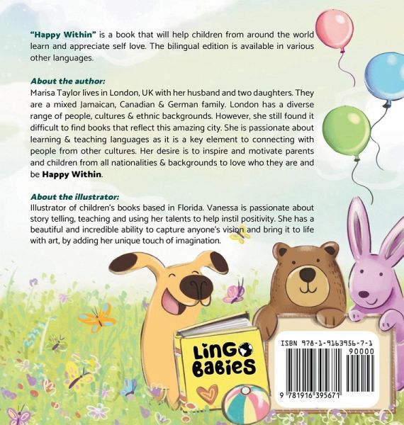 Happy within is a children's book that will help children from around the world learn, appreciate self-love and embrace diversity. The message of the book is to help provide children with the support and confidence to be happy with themselves and within their own skin. No matter where in the world they are from, whether the race, the background, etc. The book includes a diverse range of characters with the message that we should all love ourselves and support one another to be the best we can be. It is a positive children's book teaching them to be proud of themselves, proud of who they are and of their uniqueness. Teaching that happiness is not dependent on others and starts with loving yourself. Only through self-love and believing in oneself it is possible to be happy within. The bilingual versions of this book are to help children/parents learn another language together. Spanish, Italian, French, German, Portuguese & Swedish editions have been published and additional bilingual versions to follow. Follow @lingobabies to stay up to date with new releases. This book is ideal for children between the ages of 2-6. A letter to the readers... I wrote this book to try to help prepare our children for the world we live in. As a mother to biracial children I wanted something that helps teach them that they are beautiful and that it is important to love oneself to be truly happy. To teach them that all children are special in their own way. When I finished writing the book I didn't want to keep it to myself, but share this message with other families, as it is an important lesson in life. It is equally important for children to love themselves and know that their happiness is not dependent on others.