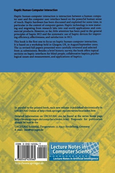 This book is the first one to focus on haptic human-computer interaction. It is based on a workshop held in Glasgow, UK, in August / September 2000. The 22 revised full papers presented were carefully reviewed and selected from 35 submissions. Besides a brief historic survey, the book offers topical sections on haptic interfaces for blind people, collaborative haptics, psychological issues and measurement, and applications of haptics.