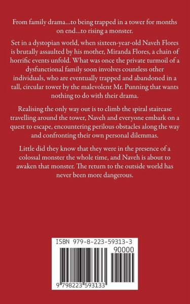 From family drama, to being trapped in a tower for months on end, to rising a monster. Set in a dystopian world, when sixteen-year-old Naveh Flores is physically assaulted by his mother, Miranda Flores, a chain of horrific events unfold. What was once the private turmoil of a dysfunctional family soon involves countless other individuals, who are eventually trapped and abandoned in a tall, circular tower by the malevolent Mr. Punning that wants nothing to do with them. Realising the only way out is to climb the spiral staircase travelling around the tower, Naveh and everyone embark on a quest to escape, encountering perilous obstacles along the way and confronting their own personal dilemmas. Little did they know that they were in the presence of a colossal monster the whole time, and Naveh is about to awaken that monster. The return to the outside world has never been more dangerous.