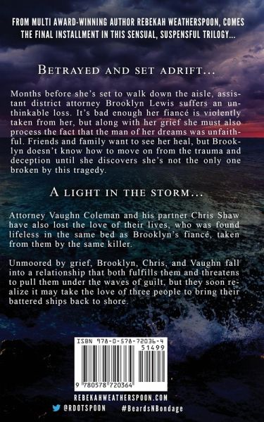 From multi award-winning author Rebekah Weatherspoon comes the final installment in this sensual, suspenseful trilogy... Betrayed and set adrift... Months before she's set to walk down the aisle, assistant district attorney Brooklyn Lewis suffers an unthinkable loss. It's bad enough her fiancé is violently taken from her, but along with her grief she must also process the fact that the man of her dreams was unfaithful. Friends and family want to see her heal, but Brooklyn doesn't know how to move on from the trauma and deception until she discovers she's not the only one broken by this tragedy. A light in the storm... Attorney Vaughn Coleman and his partner Chris Shaw have also lost the love of their lives, who was found lifeless in the same bed as Brooklyn's fiancé, taken from them by the same killer. Unmoored by grief, Brooklyn, Chris, and Vaughn fall into a relationship that both fulfills them and threatens to pull them under the waves of guilt, but they soon realize it may take the love of three people to bring their battered ships back to shore.