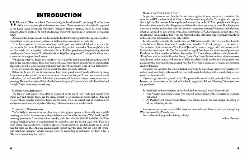 These cruciverbal gems are seriously tough to crack! Everyone looks forward to Saturday, but for some of us, it's not just because it's the weekend—it's when the newspapers publish their hardest crosswords. Hard as a Rock Crosswords: Quite Hard Indeed! features the hardest of the hard, with some of the twistiest, most fiendishly misleading clues you'll ever have the pleasure of tearing your hair out over. This 96-page puzzle book features 72 themeless 15x15 crosswords from some of the top puzzle makers in the country, with wide-open diagrams that will make you wonder "How did they even make this?" Expert solvers will love the challenge, and those who want to become expert solvers will enjoy the opportunity to hone their skills. And if the puzzles ever make you feel at a loss for words, the answers are always in the back.