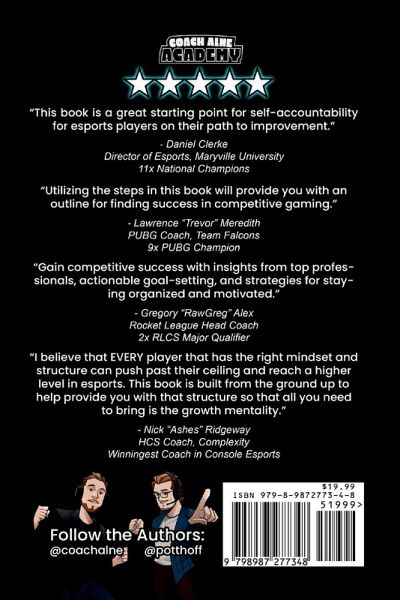 The perfect tool for anyone looking to improve at competitive video games, "Hard Carry" is an 8-week guided journal designed for players of all skill levels to develop proper habits, track their progress, set appropriate goals, and establish the building blocks to help them succeed. Each week features contributions from some of the most talented and winningest coaches in esports, giving the reader a unique perspective and inside look into the thought processes and habits that have created world championship teams. This journal works for all competitive video games and is perfect for individual player development, esports summer camps, scholastic and collegiate esports teams, and esports coaches looking for a way to monitor player progress. Parents can also use this journal as a way to add structure and guidance to their kids' time playing video games.