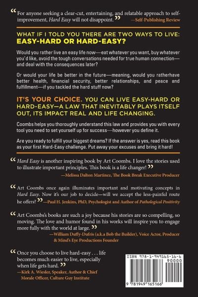 What if I told you there are two ways to live: easy-hard or hard-easy? Would you rather live an easy life now-eat whatever you want, buy whatever you'd like, avoid tough conversations needed for true human connection-and deal with the consequences later? Or would your life be better in the future-meaning, would you rather have better health, financial security, better relationships, and peace and fulfillment-if you tackled the hard stuff now? It's your choice. You can live easy-hard or hard-easy-a law that inevitably plays itself out, its impact real and life changing. Coombs helps you thoroughly understand this law and provides you with every tool you need to set yourself up for success-however you define it. Are you ready to fulfill your biggest dreams? If the answer is yes, read this book as your first Hard-Easy challenge. Put away your excuses and bring it hard!