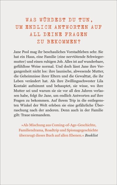 Den zweieiigen Zwillingen Jane and Lila Pool bleibt gar nichts anderes übrig, als »hard girls« zu werden. Ihr Vater ist ein verpeilter Professor an einer Kleinstadtuni. Ihre Mutter, Anabel, scheint sich kein bisschen für ihre Kinder zu interessieren. Sie ist oft mit unbekanntem Ziel unterwegs, ist ansonsten von eisiger Gleichgültigkeit und eines Tages ganz verschwunden. Die Mädchen flüchten in ihre eigene Welt, spielen Spionin und sind in einer Theatergruppe aktiv. Als es dort zu einer Gewalttat kommt, laufen sie von zu Hause weg und treiben sich herum. Jane landet schließlich für einige Zeit im Gefängnis, und Lila verschwindet spurlos wie ihre Mutter. Doch dann taucht plötzlich ein Hinweis auf, dass Anabel in den USA gesehen wurde. Lila meldet sich nach Jahren bei Jane - die beiden machen sich auf, ihre Mutter zu suchen. Und erleben eine gefährliche Überraschung nach der anderen. Denn auch in der Familie gilt: Traue niemandem.
