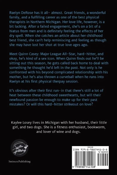 Raelyn DeRose has it all- almost. Great friends, a wonderful- not to mention insanely wealthy- family, and a fulfilling, successful career as one of the best physical therapists around. Her love life, however, is a bit lacking. After a failed engagement, she's on a bit of a hiatus from men, and is definitely feeling the effects of her dry spell. When she catches an article about her childhood best friend and his booming professional baseball career, she can't help reminiscing and feeling as though she may have lost her shot at true love ages ago. Meet Quinn Casey: Major-League All-Star, hard-hitter, and okay, he's kind of a sex icon. When Quinn finds out he'll be sitting out this season after an injury, he gets called back home to deal with something he thought he'd left in the past. Not only is he confronted with his beyond complicated relationship with his mother, but he's also thrown a curveball when he runs into his childhood best friend at his first physical therapy session. With their history and his new reputation, Quinn knows he's got a lot of work to do if he wants to take his last chance all the way home. It's obvious after their first run-in that there's still a lot of steam between these childhood sweethearts, but will their passion- and let's not forget the bed-breaking sex- be enough to make up for their past mistakes? Or will this hard-hitter strikeout on love?