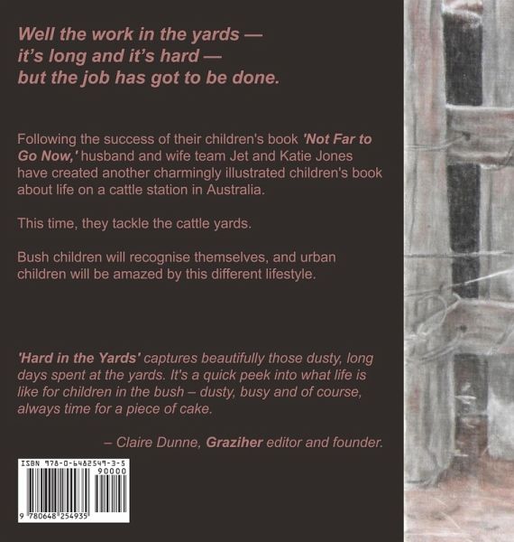 'Well, the work in the yards is long and it's hard...' Following on the success of their 'Not Far to Go Now,' husband and wife team Jet and Katie Jones have created another charmingly illustrated children's book about life on a cattle station in Australia. This time, they attack the subject of the cattle yards: 'There's drafting and branding, The work is demanding, We'll spray 'em for lice and for ticks..' Bush children will recognise themselves, and urban children will be amazed by this different lifestyle.