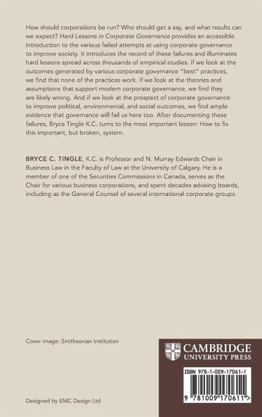 How should corporations be run? Who should get a say, and what results can we expect? Hard Lessons in Corporate Governance provides an accessible introduction to the various failed attempts at using corporate governance to improve society. It introduces the record of these failures and illuminates hard lessons spread across thousands of empirical studies. If we look at the outcomes generated by various corporate governance 'best' practices, we find that none of the practices work. If we look at the theories and assumptions that support modern corporate governance, we find they are likely wrong. And if we look at the prospect of corporate governance to improve political, environmental, and social outcomes, we find ample evidence that governance will fail us here too. After documenting these failures, Bryce Tingle K.C. turns to the most important lesson: How to fix this important, but broken, system.
