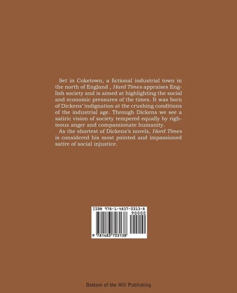 Set in Coketown, a fictional industrial town in the north of England , Hard Times appraises English society and is aimed at highlighting the social and economic pressures of the times. It was born of Dickens' indignation at the crushing conditions of the industrial age. Through Dickens we see a satiric vision of society tempered equally by righteous anger and compassionate humanity. As the shortest of Dickens's novels, Hard Times is considered his most pointed and impassioned satire of social injustice.