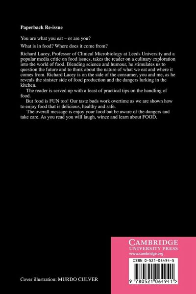 You are what you eat - or are you? What is in food? Where does it come from? Richard Lacey, Professor of Clinical Microbiology at Leeds University and a popular media critic on food issues, takes the reader on a culinary exploration into the world of food. Blending science and humour, he stimulates us to question the future and to think about the nature of what we eat and where it comes from. Richard Lacey is on the side of the consumer, you and me, as he reveals the sinister side of food production and the dangers lurking in the kitchen. The reader is served up with a feast of practical tips on the handling of food. But food is FUN too! Our taste buds work overtime as we are shown how to enjoy food that is delicious, healthy and safe. The overall message is enjoy your food but be aware of the dangers and take care. As you read you will laugh, wince and learn about FOOD.