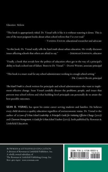 The Hard Truth is a book written for principals and school administrators who want to implement effective change. The topics of the book candidly discuss the problems, people, and issues that get in the way of true school reform; and what building level principals can personally do attain the best possible outcomes.