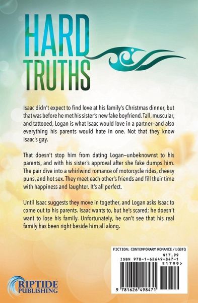 Isaac didn’t expect to find love at his family’s Christmas dinner, but that was before he met his sister’s new fake boyfriend. Tall, muscular, and tattooed, Logan is what Isaac would love in a partner—and also everything his parents would hate in one. Not that they know Isaac’s gay. That doesn’t stop him from dating Logan—unbeknownst to his parents, and with his sister’s approval after she fake dumps him. The pair dive into a whirlwind romance of motorcycle rides, cheesy puns, and hot sex. They meet each other’s friends and fill their time with happiness and laughter. It’s all perfect. Until Isaac suggests they move in together, and Logan asks Isaac to come out to his parents. Isaac wants to, but he’s scared; he doesn’t want to lose his family. Unfortunately, he can’t see that his real family has been right beside him all along.