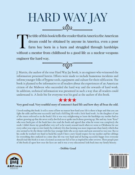 J. Martin, the author of the true Hard Way Jay book, is an engineer who witnessed the information presented herein. Eff orts were made to include humorous incidents and inform younger folks of bygone tools, equipment and culture for their edification. Th e book is planned to be informative to all readers about the experiences of an American citizen of the Midwest who succeeded the hard way and the rewards of hard work. In addition, technical information was presented in such a way that all readers could understand it. A little bit for everyone was his goal as the author of this book.