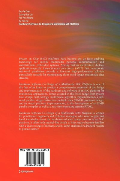 Hardware Software Co-Design of a Multimedia SOC Platform is one of the first of its kinds to provide a comprehensive overview of the design and implementation of the hardware and software of an SoC platform for multimedia applications. Topics covered in this book range from system level design methodology, multimedia algorithm implementation, a sub-word parallel, single-instruction-multiple data (SIMD) processor design, and its virtual platform implementation, to the development of an SIMD parallel compiler as well as a real-time operating system (RTOS). Hardware Software Co-Design of a Multimedia SOC Platform is written for practitioner engineers and technical managers who want to gain first hand knowledge about the hardware-software design process of an SoC platform. It offers both tutorial-like details to help readers become familiar with a diverse range of subjects, and in-depth analysis for advanced readers to pursue further.