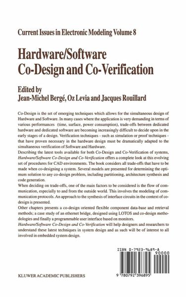 Describing the latest tools available for both Co-Design and Co-Verification of systems, Hardware/Software Co-Design and Co-Verification offers a complete look at this evolving set of procedures for CAD environments. The book considers all trade-offs that have to be made when co-designing a system. Several models are presented for determining the optimum solution to any co-design problem, including partitioning, architecture synthesis and code generation.