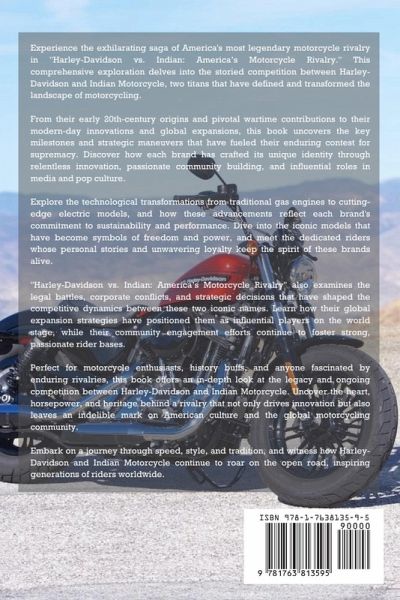 Experience the exhilarating saga of America's most legendary motorcycle rivalry in "Harley-Davidson vs. Indian: America's Motorcycle Rivalry." This comprehensive exploration delves into the storied competition between Harley-Davidson and Indian Motorcycle, two titans that have defined and transformed the landscape of motorcycling. From their early 20th-century origins and pivotal wartime contributions to their modern-day innovations and global expansions, this book uncovers the key milestones and strategic maneuvers that have fueled their enduring contest for supremacy. Discover how each brand has crafted its unique identity through relentless innovation, passionate community building, and influential roles in media and pop culture. Explore the technological transformations from traditional gas engines to cutting-edge electric models, and how these advancements reflect each brand's commitment to sustainability and performance. Dive into the iconic models that have become symbols of freedom and power, and meet the dedicated riders whose personal stories and unwavering loyalty keep the spirit of these brands alive. "Harley-Davidson vs. Indian: America's Motorcycle Rivalry" also examines the legal battles, corporate conflicts, and strategic decisions that have shaped the competitive dynamics between these two iconic names. Learn how their global expansion strategies have positioned them as influential players on the world stage, while their community engagement efforts continue to foster strong, passionate rider bases. Perfect for motorcycle enthusiasts, history buffs, and anyone fascinated by enduring rivalries, this book offers an in-depth look at the legacy and ongoing competition between Harley-Davidson and Indian Motorcycle. Uncover the heart, horsepower, and heritage behind a rivalry that not only drives innovation but also leaves an indelible mark on American culture and the global motorcycling community. Embark on a journey through speed, style, and tradition, and witness how Harley-Davidson and Indian Motorcycle continue to roar on the open road, inspiring generations of riders worldwide.