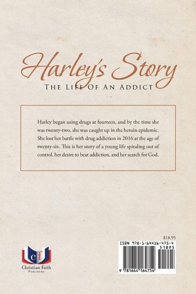 Harley began using drugs at fourteen, and by the time she was twenty-two, she was caught up in the heroin epidemic. She lost her battle with drug addiction in 2016 at the age of twenty-six. This is her story of a young life spiraling out of control, her desire to beat addiction, and her search for God.
