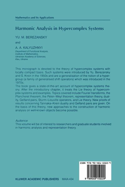 First works related to the topics covered in this book belong to J. Delsarte and B. M. Le vitan and appeared since 1938. In these works, the families of operators that generalize usual translation operators were investigated and the corresponding harmonic analysis was constructed. Later, starting from 1950, it was noticed that, in such constructions, an important role is played by the fact that the kernels of the corresponding convolutions of functions are nonnegative and by the properties of the normed algebras generated by these convolutions. That was the way the notion of hypercomplex system with continu ous basis appeared. A hypercomplex system is a normed algebra of functions on a locally compact space Q-the "basis" of this hypercomplex system. Later, similar objects, hypergroups, were introduced, which have complex-valued measures on Q as elements and convolution defined to be essentially the convolution of functionals and dual to the original convolution (if measures are regarded as functionals on the space of continuous functions on Q). However, until 1991, the time when this book was written in Russian, there were no monographs containing fundamentals of the theory (with an exception of a short section in the book by Yu. M. Berezansky and Yu. G. Kondratiev [BeKo]). The authors wanted to give an introduction to the theory and cover the most important subsequent results and examples.