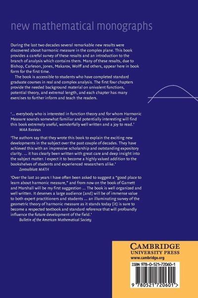 During the last two decades several remarkable new results were discovered about harmonic measure in the complex plane. This book provides a careful survey of these results and an introduction to the branch of analysis which contains them. Many of these results, due to Bishop, Carleson, Jones, Makarov, Wolff and others, appear here in paperback for the first time. The book is accessible to students who have completed standard graduate courses in real and complex analysis. The first four chapters provide the needed background material on univalent functions, potential theory, and extremal length, and each chapter has many exercises to further inform and teach the readers.